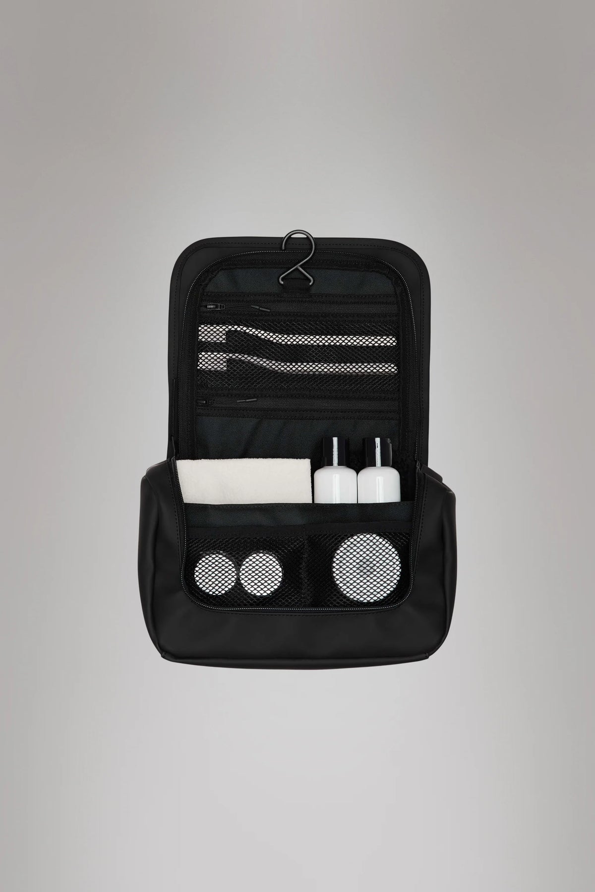 Texel Wash Bag is constructed from Rains signature water-repellent PU fabric, engineered for carrying strength, durability, and a smooth feel.