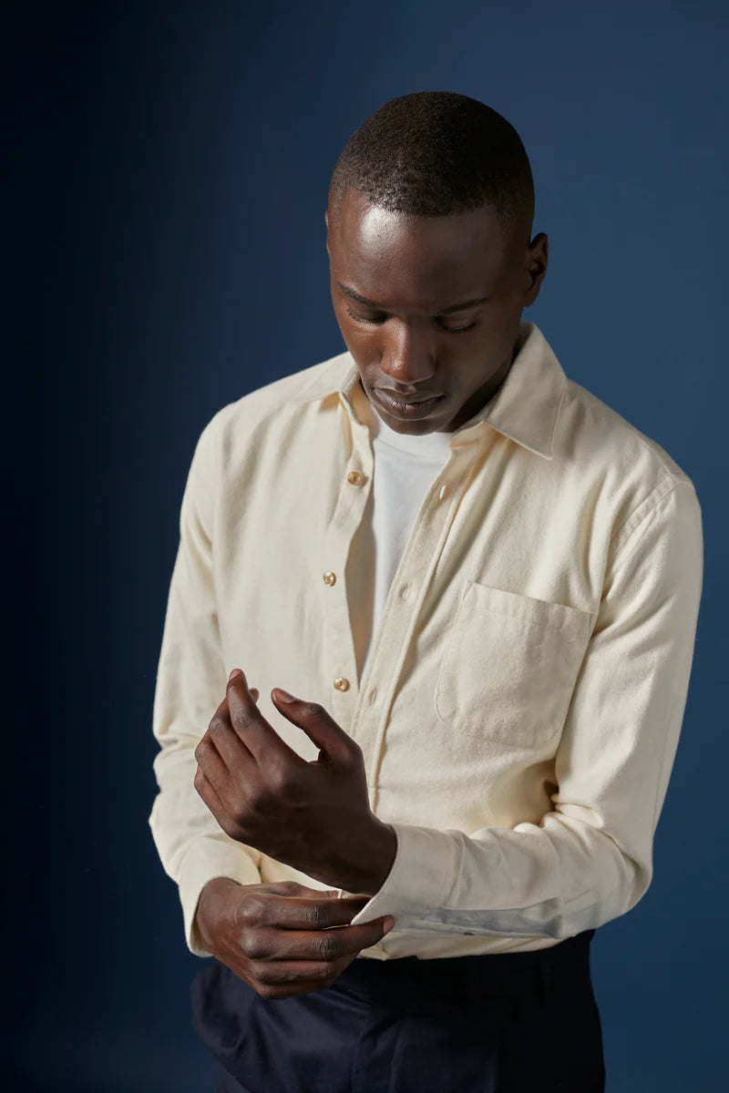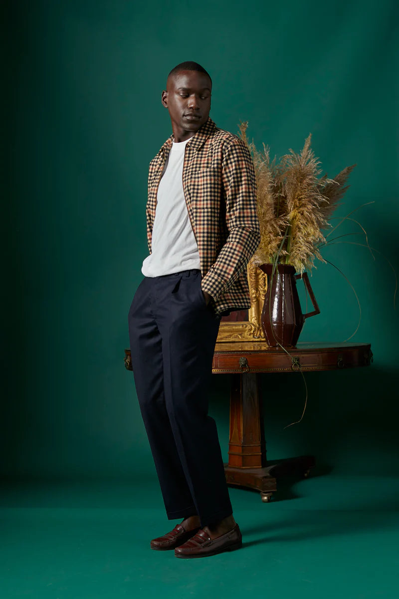 The Herringbone turn up front pleat smart trousers are made from warm wool flannel. They feature a zip and button fastening, back and side pockets. Cosy for cooler weather. Portuguese flannel making is a tradition that is widely considered an art form, something that Portuguese Flannel have harnessed in its purest form. Following the tradition of the craft, Portuguese Flannel creates timeless statement clothing every season, designed for functional and practical wear.